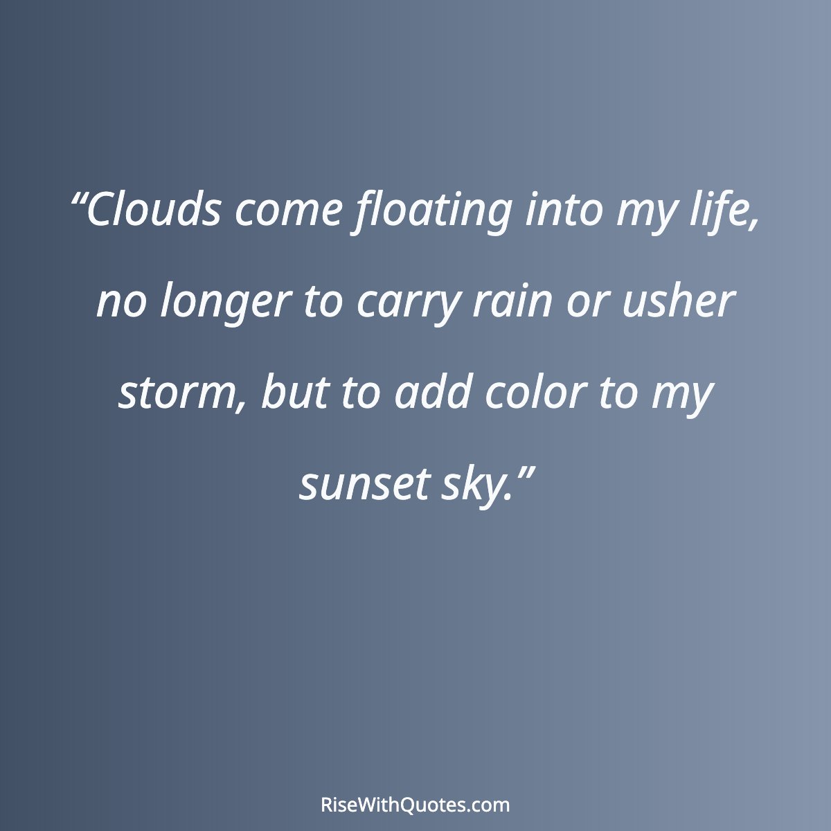 “Clouds come floating into my life, no longer to carry rain or usher storm, but to add color to my sunset sky.”