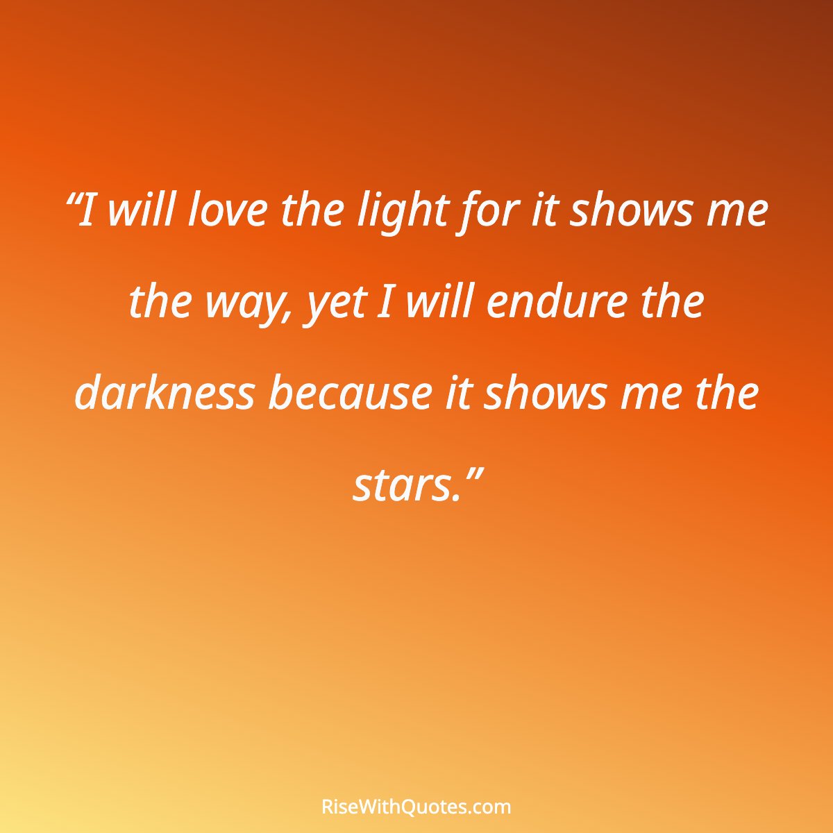 “I will love the light for it shows me the way, yet I will endure the darkness because it shows me the stars.”