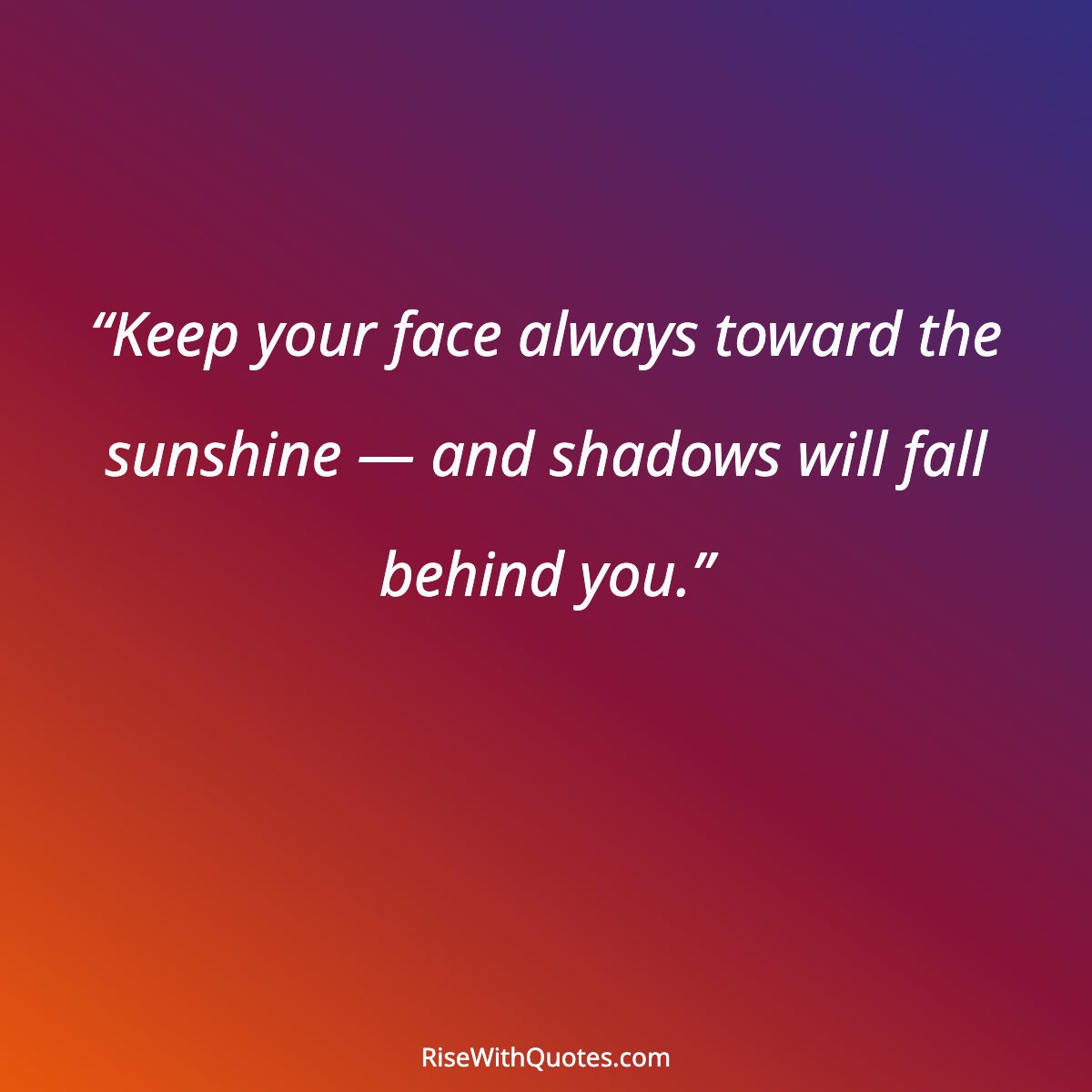 “Keep your face always toward the sunshine — and shadows will fall behind you.”