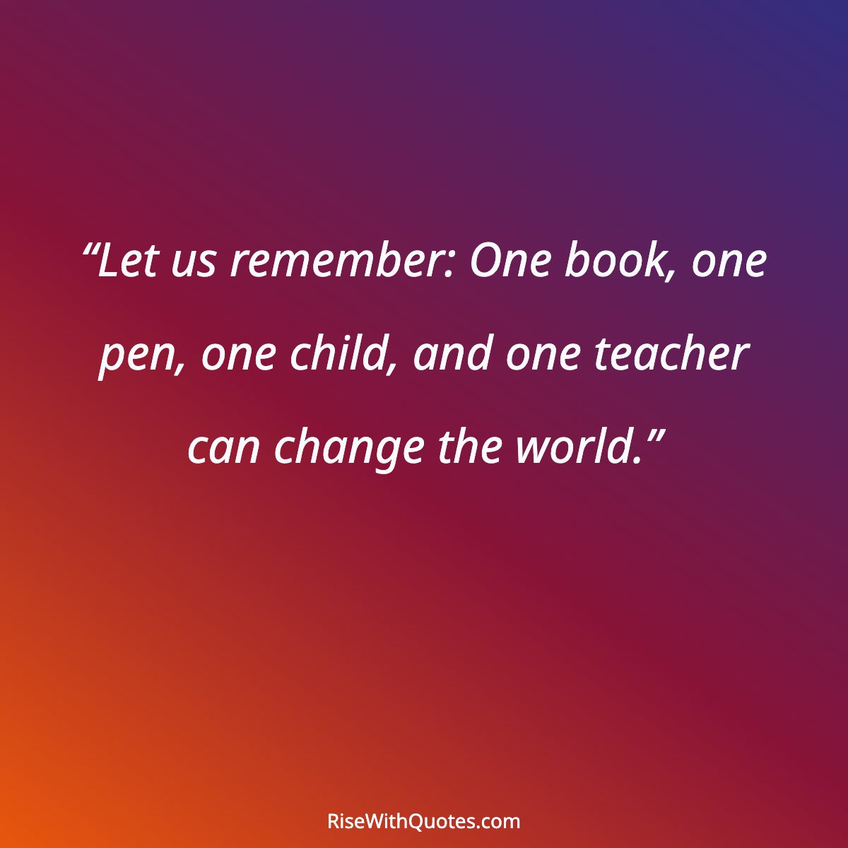 “Let us remember: One book, one pen, one child, and one teacher can change the world.”