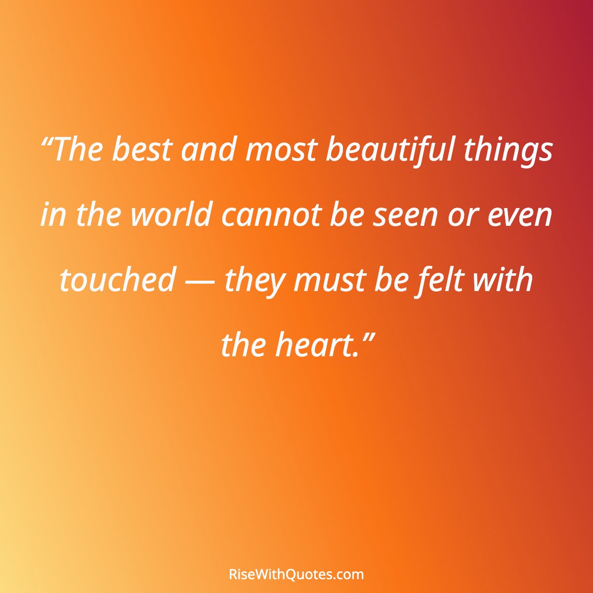 “The best and most beautiful things in the world cannot be seen or even touched — they must be felt with the heart.”