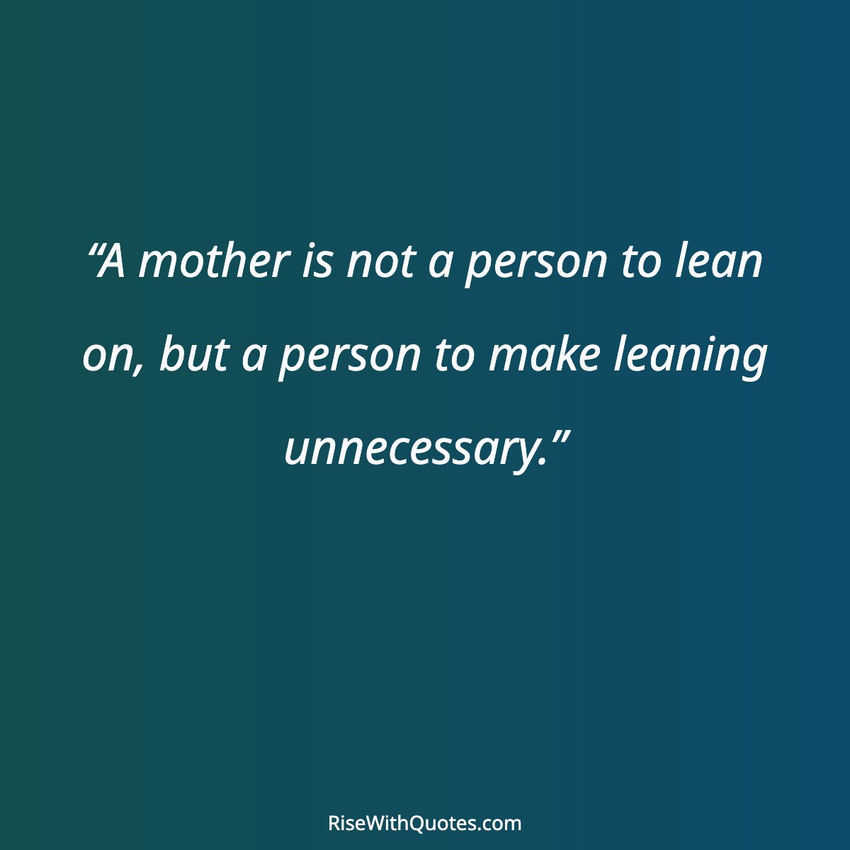 “A mother is not a person to lean on, but a person to make leaning unnecessary.”