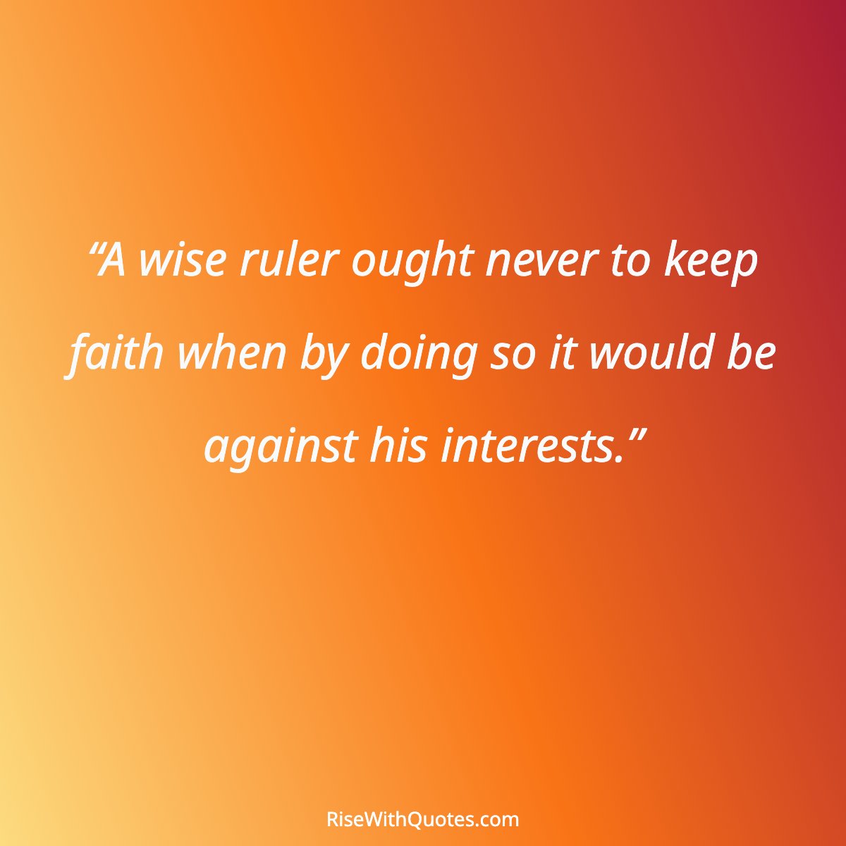 “A wise ruler ought never to keep faith when by doing so it would be against his interests.”