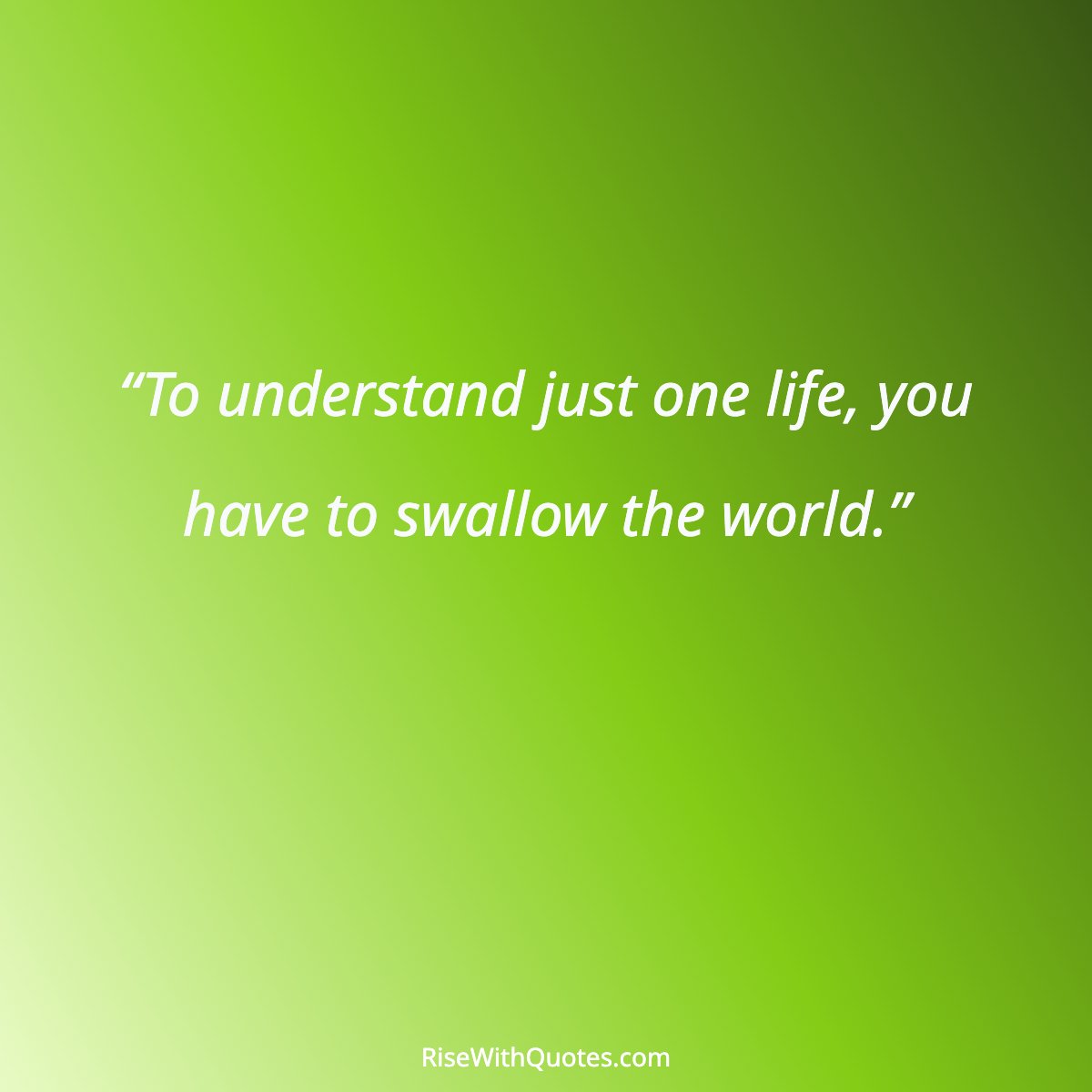 “To understand just one life, you have to swallow the world.”