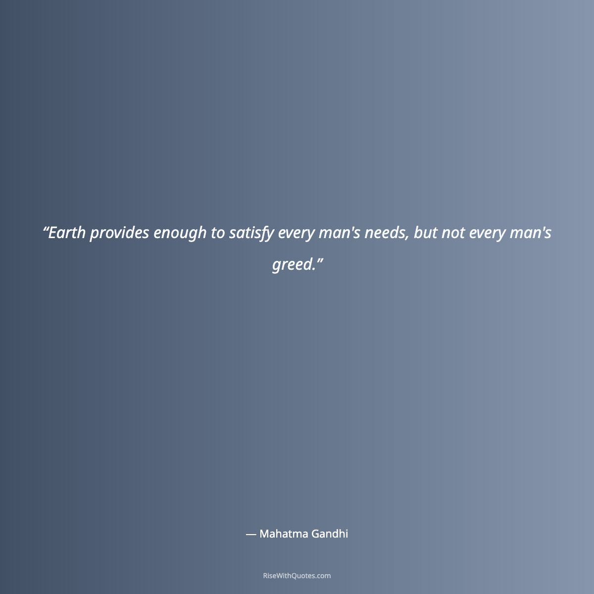 “Earth provides enough to satisfy every man's needs, but not every man's greed.”