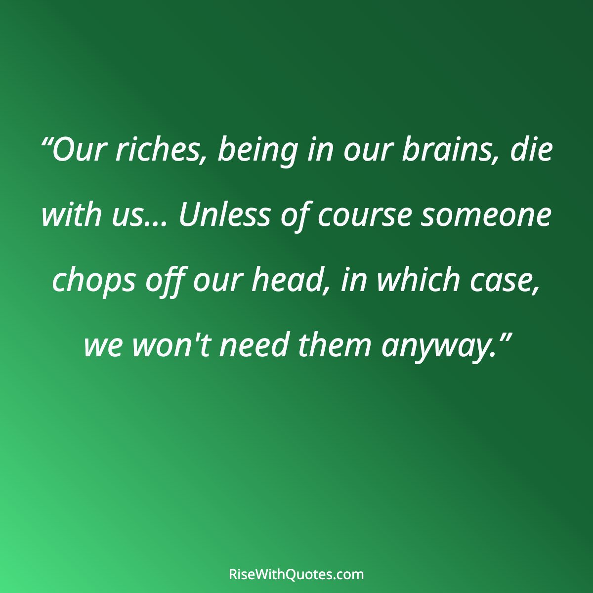 “Our riches, being in our brains, die with us... Unless of course someone chops off our head, in which case, we won't need them anyway.”