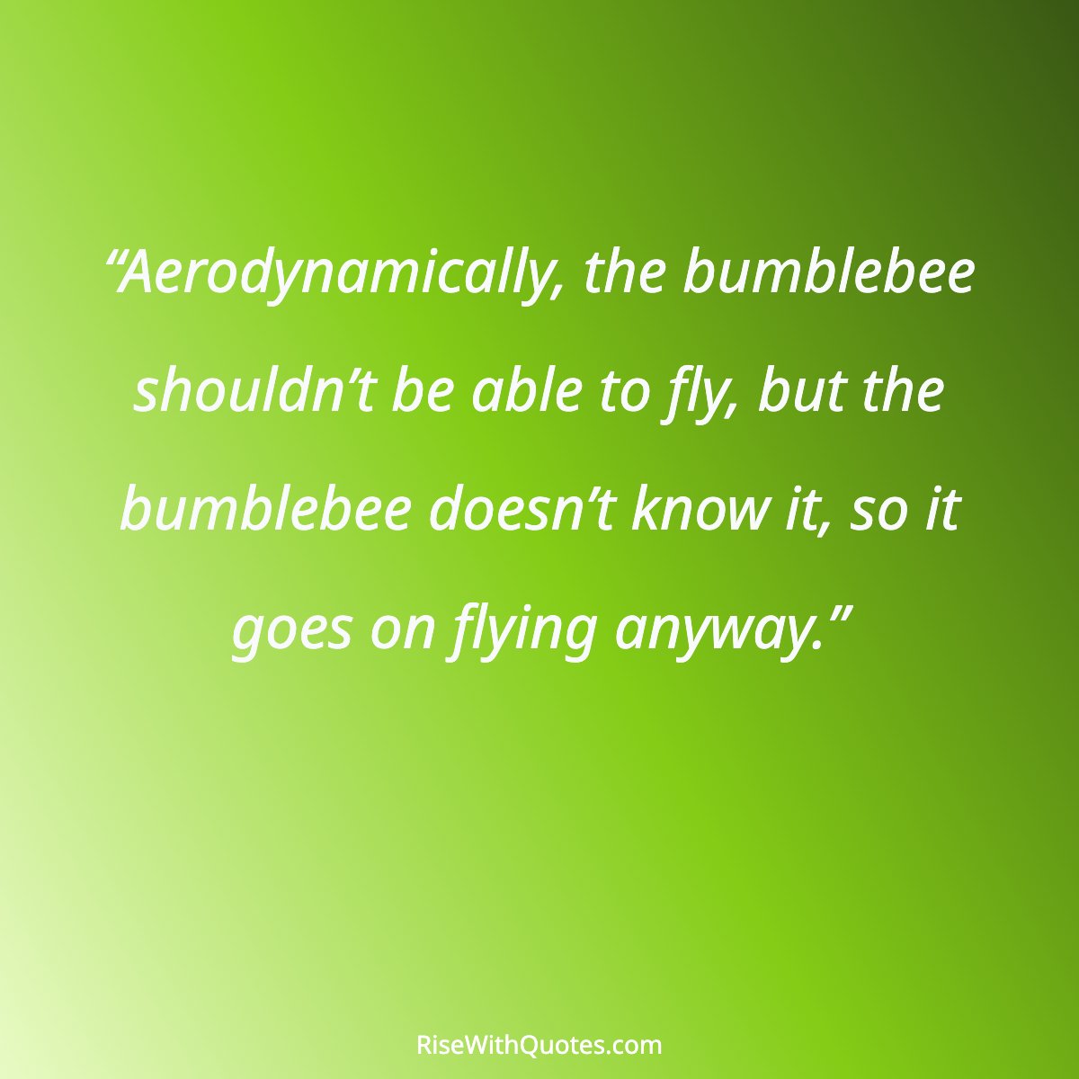 “Aerodynamically, the bumblebee shouldn’t be able to fly, but the bumblebee doesn’t know it, so it goes on flying anyway.”