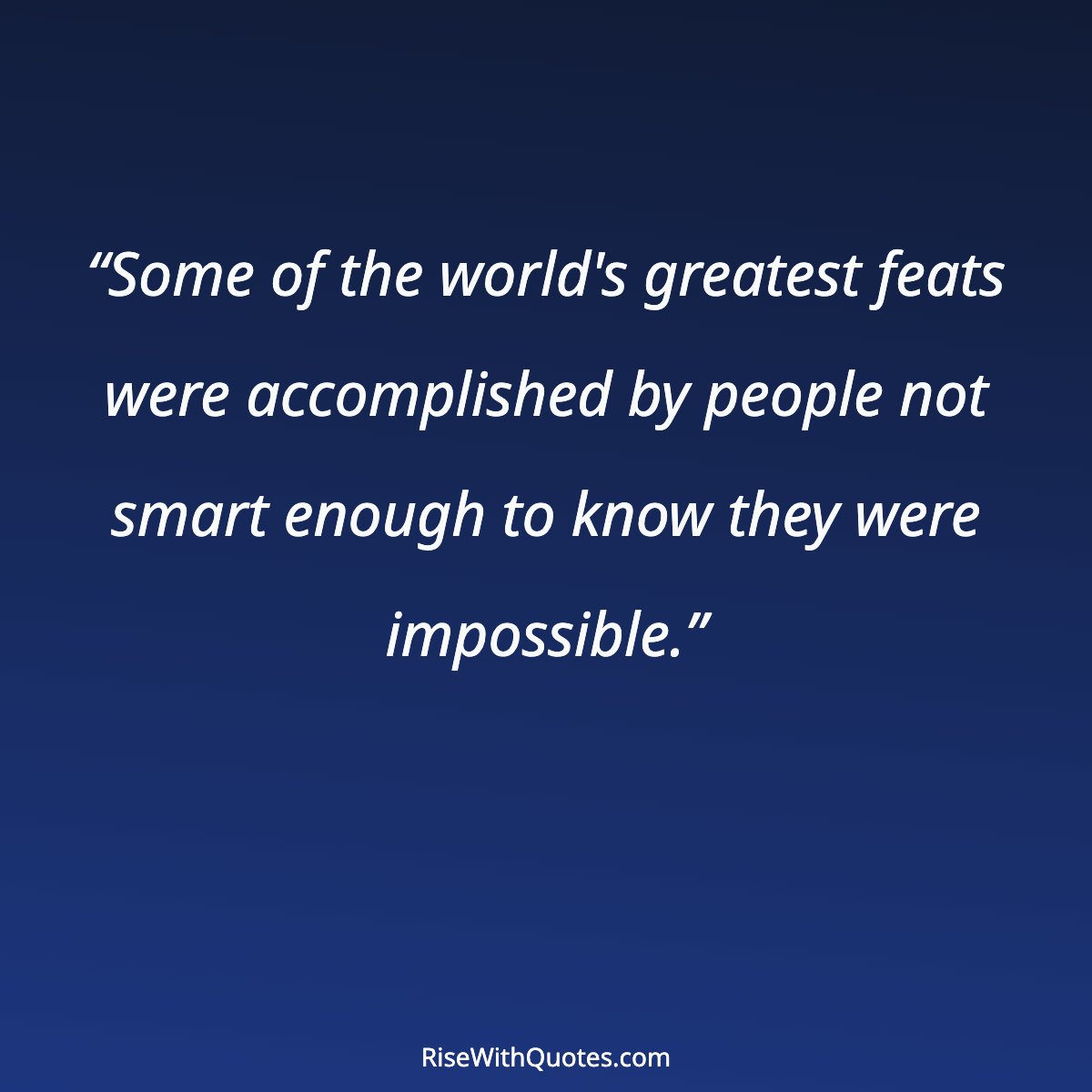 “Some of the world's greatest feats were accomplished by people not smart enough to know they were impossible.”