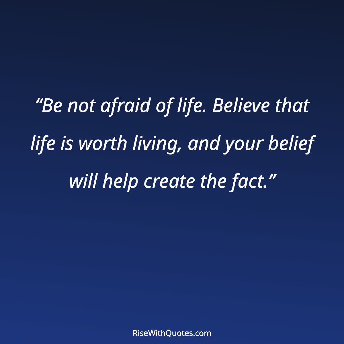 “Be not afraid of life. Believe that life is worth living, and your belief will help create the fact.”