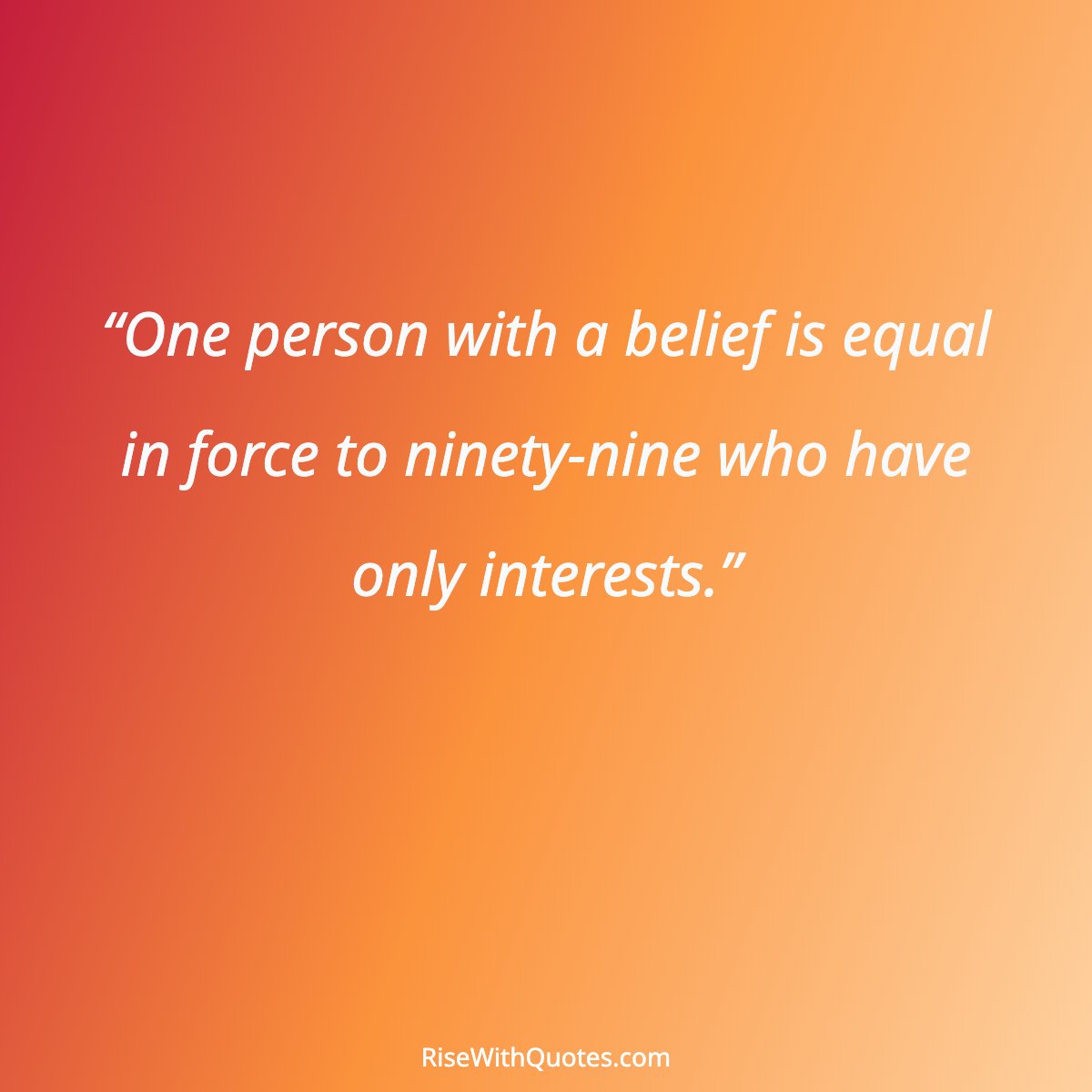“One person with a belief is equal in force to ninety-nine who have only interests.”
