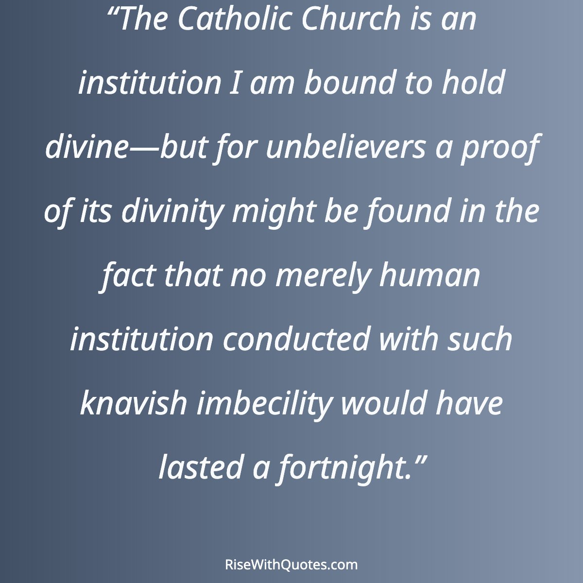 “The Catholic Church is an institution I am bound to hold divine—but for unbelievers a proof of its divinity might be found in the fact that no merely human institution conducted with such knavish imbe...”