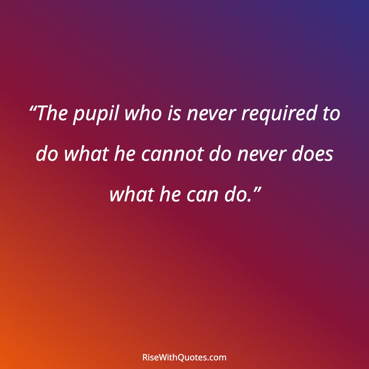 “The pupil who is never required to do what he cannot do never does what he can do.”