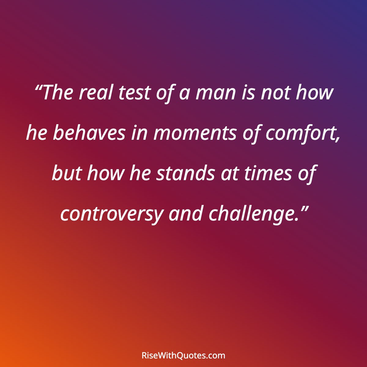 “The real test of a man is not how he behaves in moments of comfort, but how he stands at times of controversy and challenge.”
