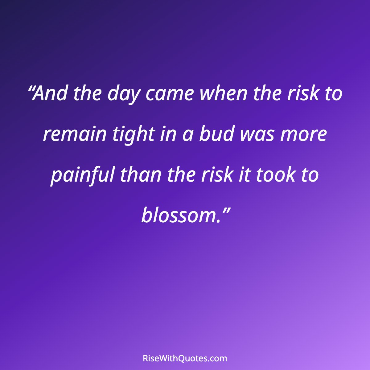“And the day came when the risk to remain tight in a bud was more painful than the risk it took to blossom.”