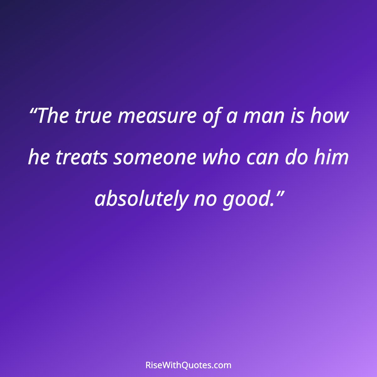 “The true measure of a man is how he treats someone who can do him absolutely no good.”