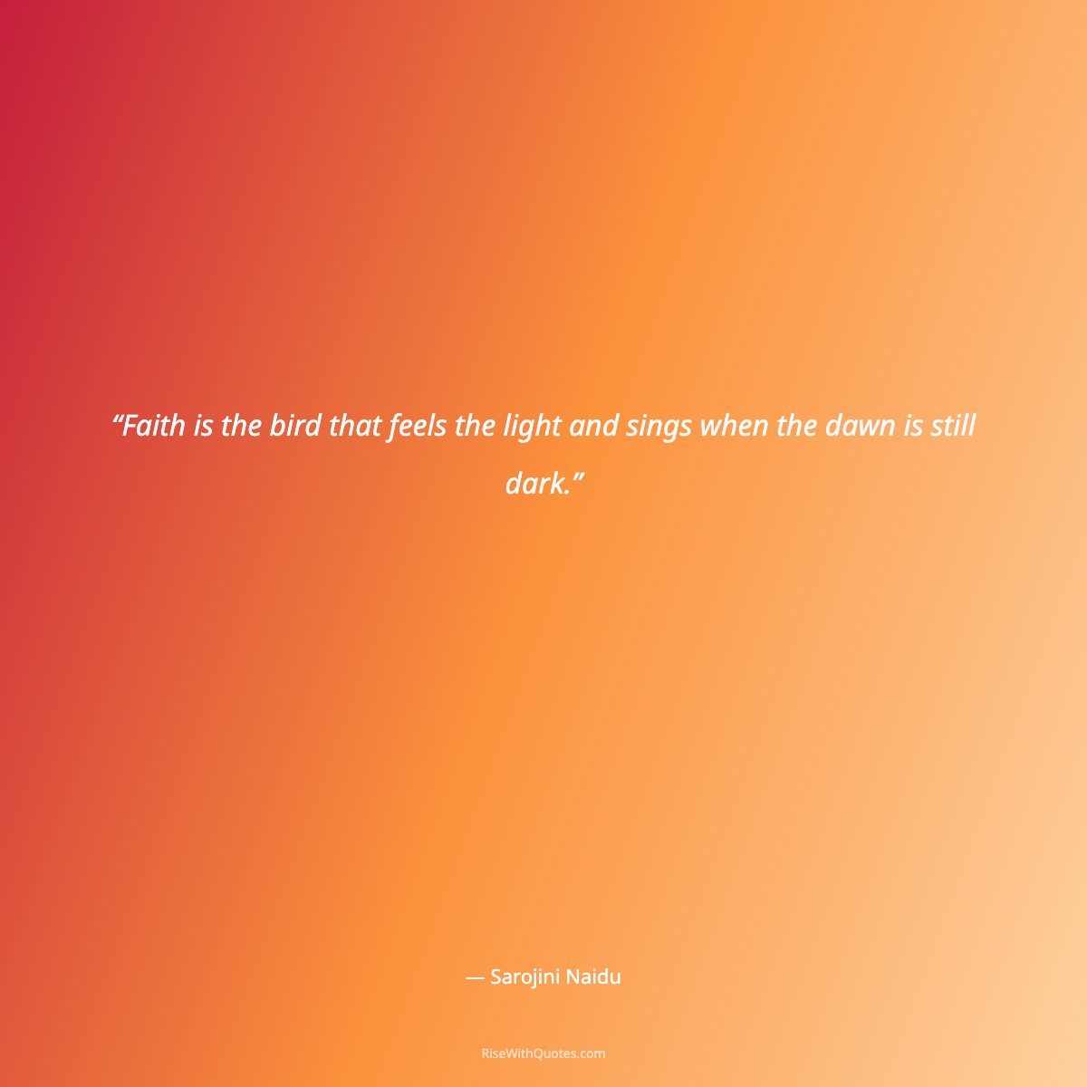 “Faith is the bird that feels the light and sings when the dawn is still dark.”
