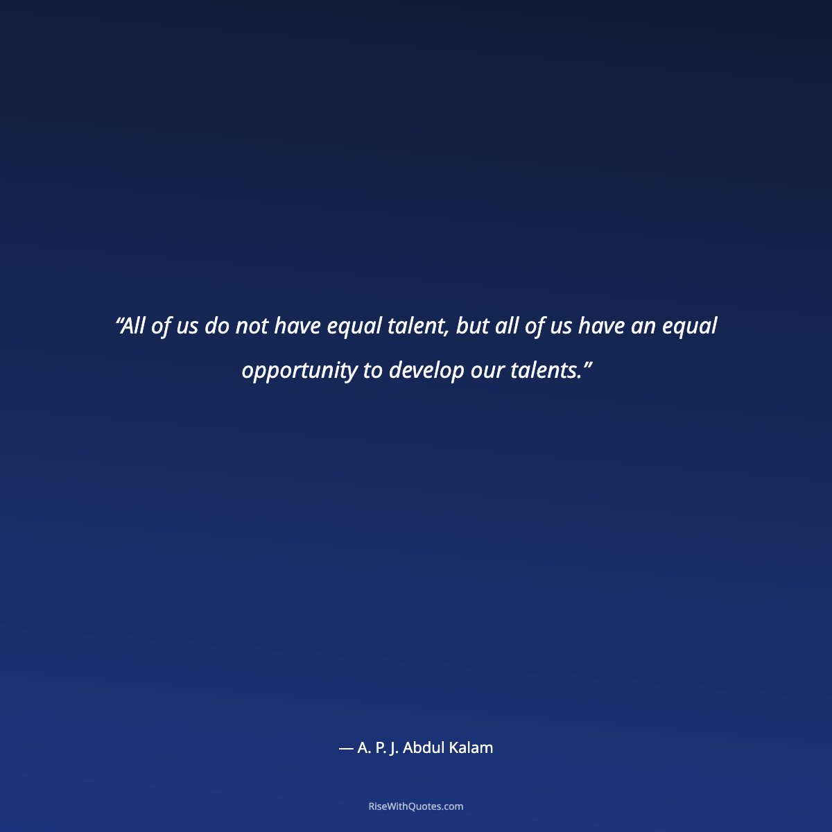 “All of us do not have equal talent, but all of us have an equal opportunity to develop our talents.”