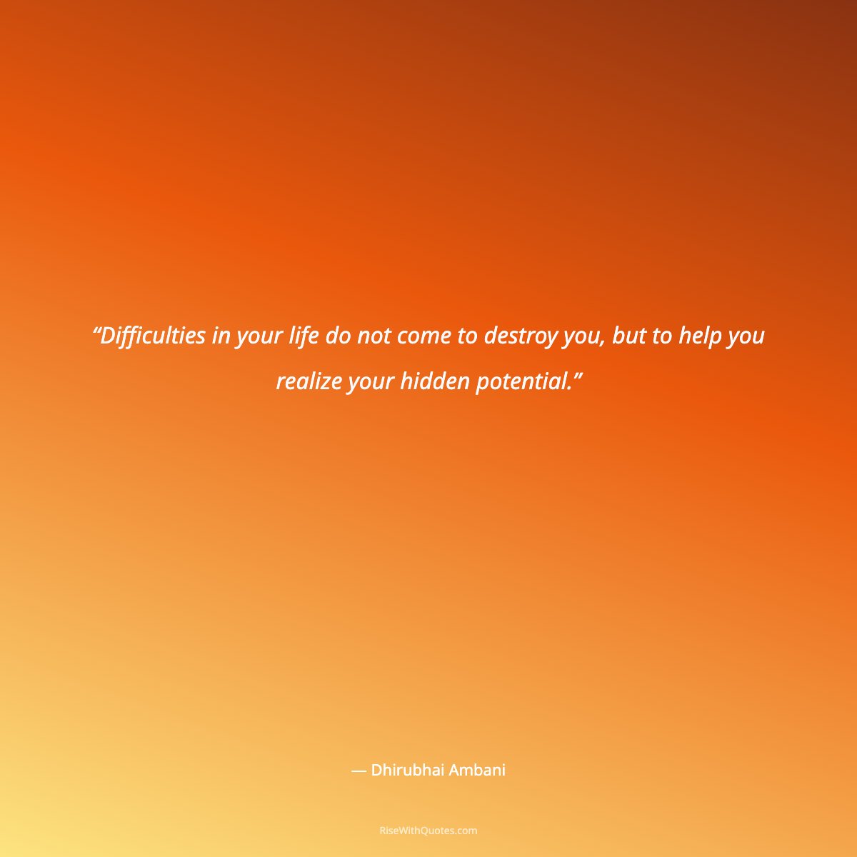 “Difficulties in your life do not come to destroy you, but to help you realize your hidden potential.”