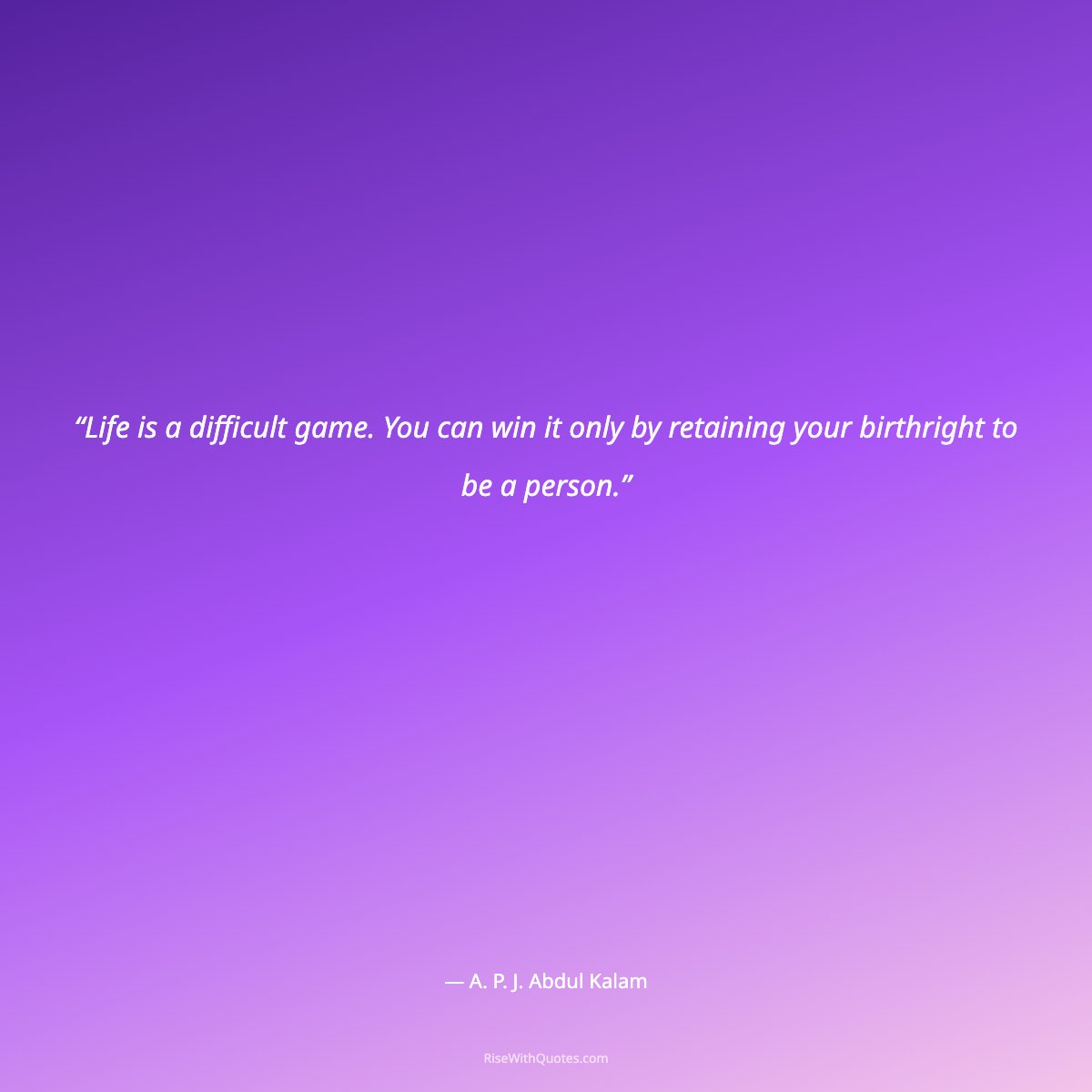“Life is a difficult game. You can win it only by retaining your birthright to be a person.”