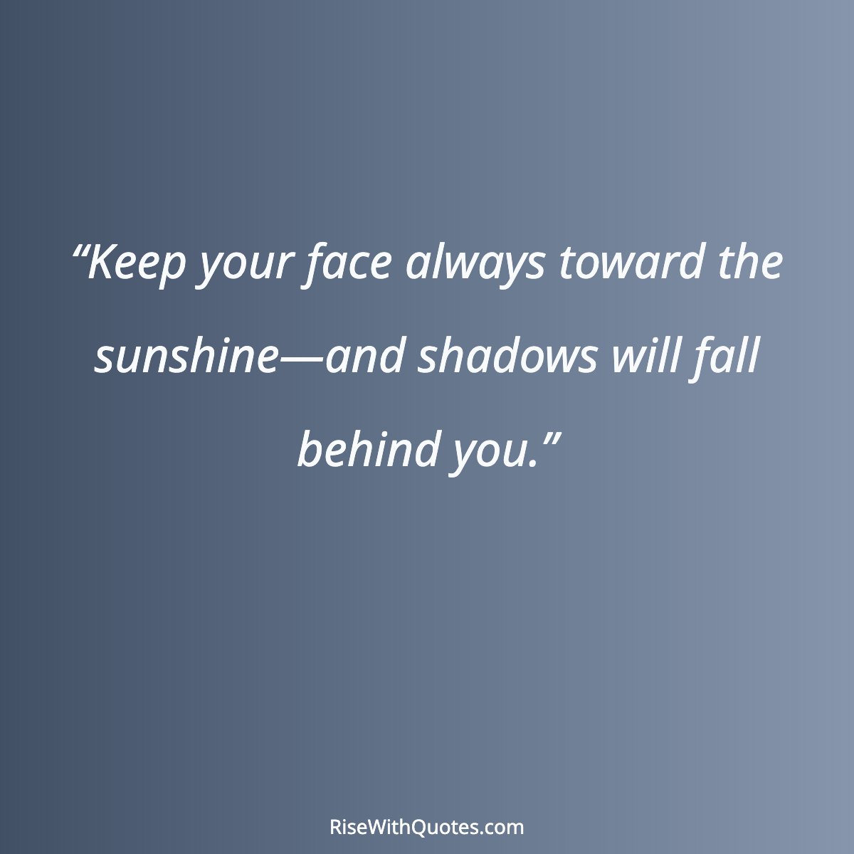 “Keep your face always toward the sunshine—and shadows will fall behind you.”