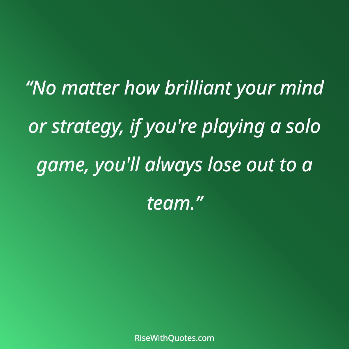 “No matter how brilliant your mind or strategy, if you're playing a solo game, you'll always lose out to a team.”