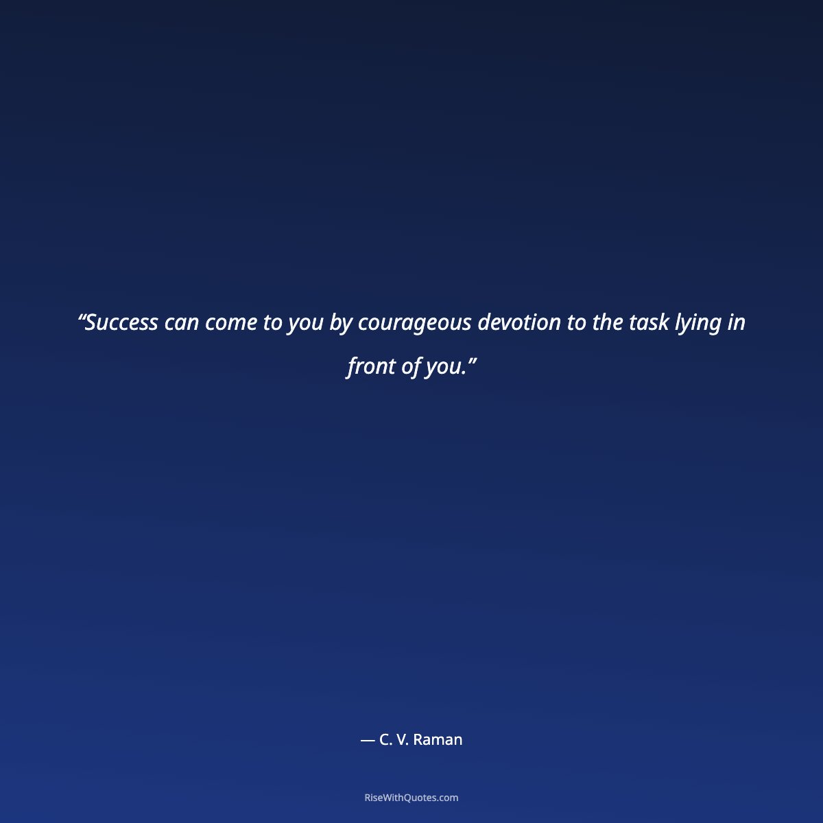 “Success can come to you by courageous devotion to the task lying in front of you.”
