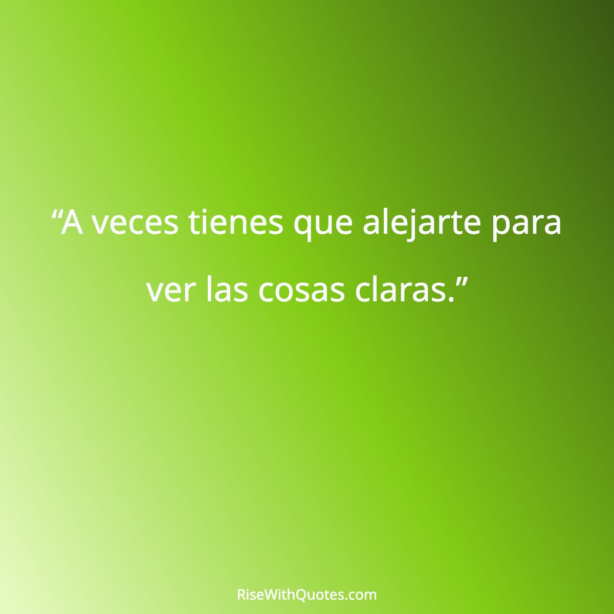 Meaning: Tomar distancia de personas o situaciones permite obtener una mejor perspectiva. Esta frase resalta la importancia de pausar y reflexionar para tomar decisiones más acertadas. -