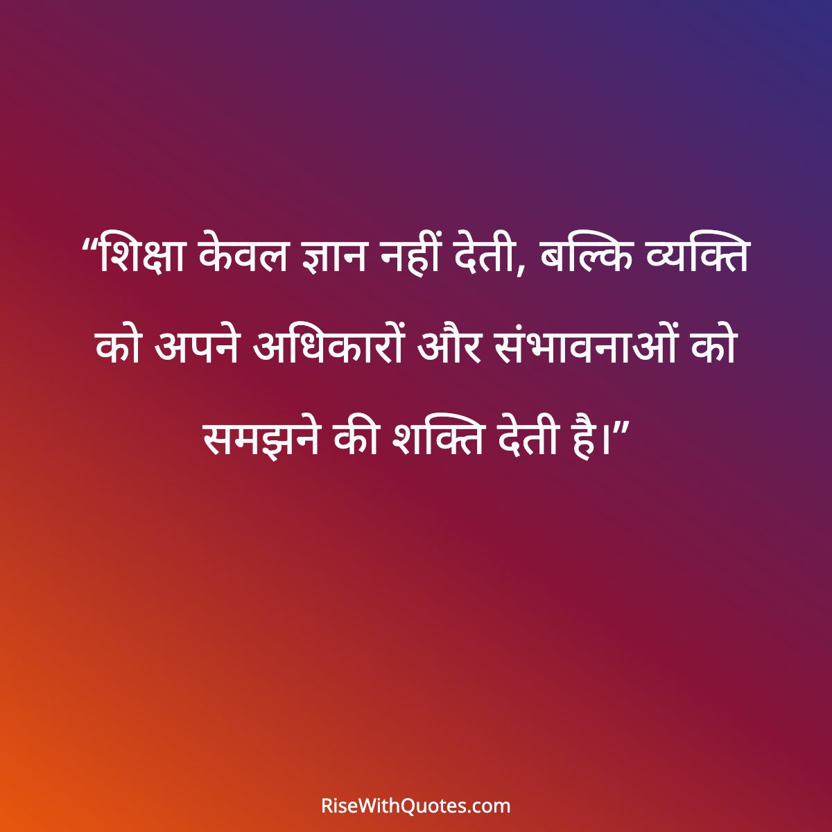 “शिक्षा केवल ज्ञान नहीं देती, बल्कि व्यक्ति को अपने अधिकारों और संभावनाओं को समझने की शक्ति देती है।”