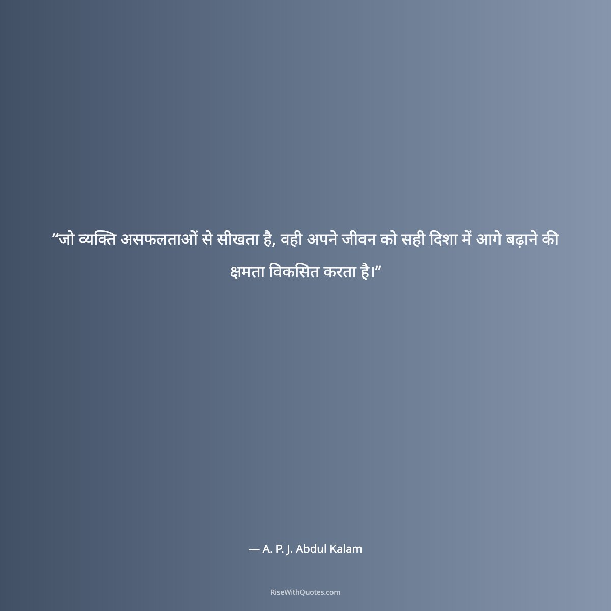 “जो व्यक्ति असफलताओं से डरता नहीं, बल्कि उनसे सीखता है, वही जीवन में आगे बढ़ता है।”