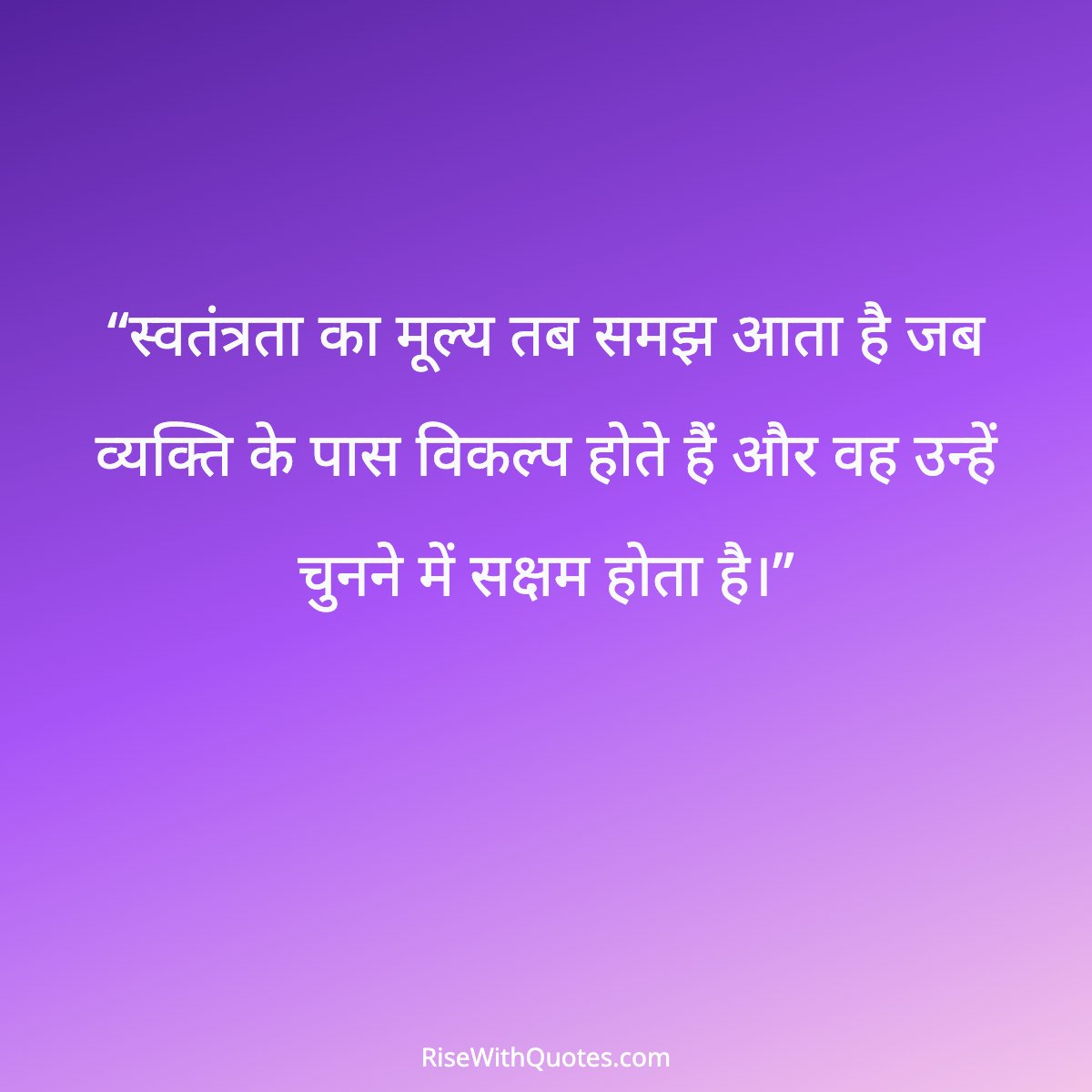“स्वतंत्रता का मूल्य तब समझ आता है जब व्यक्ति के पास विकल्प होते हैं और वह उन्हें चुनने में सक्षम होता है।”