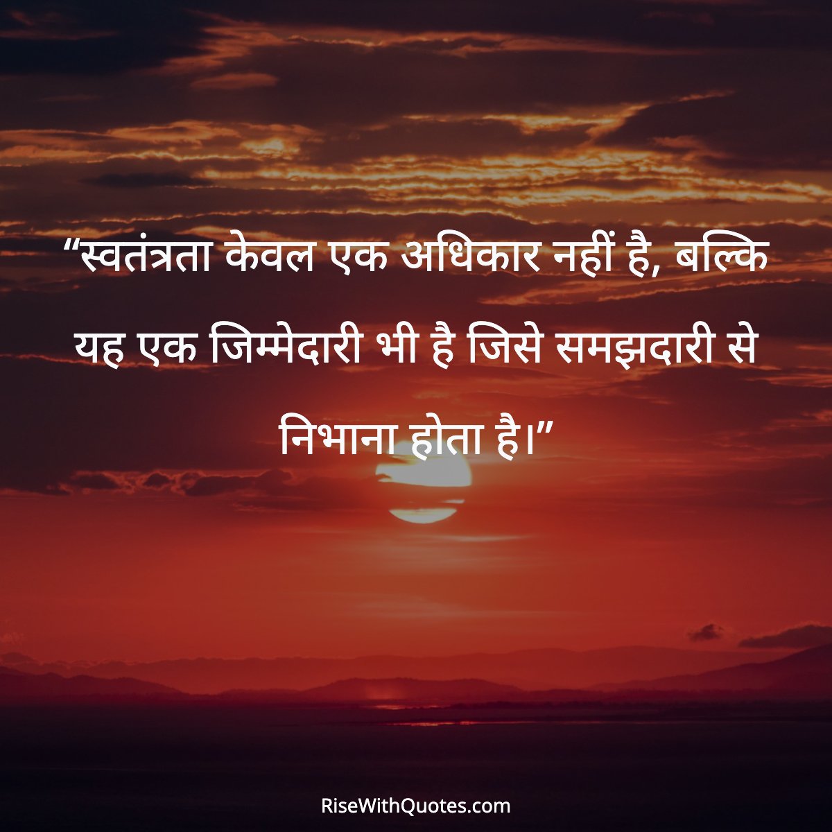 “स्वतंत्रता केवल एक अधिकार नहीं है, बल्कि यह एक जिम्मेदारी भी है जिसे समझदारी से निभाना होता है।”