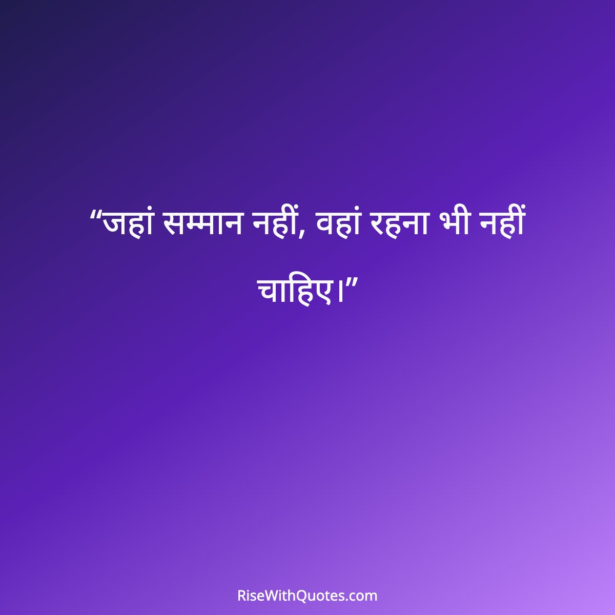 Meaning: सम्मान हर रिश्ते और परिस्थिति की नींव है। जहां आपको महत्व और आदर नहीं मिलता, वहां टिके रहना आपके आत्मसम्मान को नुकसान पहुंचा सकता है। -