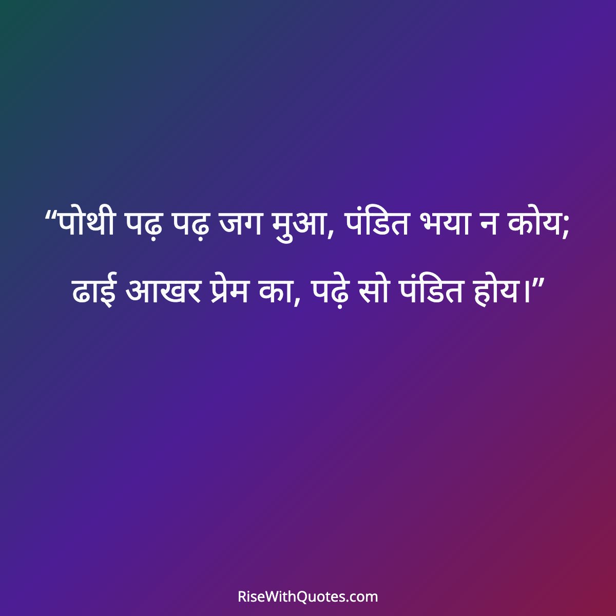 “पोथी पढ़ पढ़ जग मुआ, पंडित भया न कोय; ढाई आखर प्रेम का, पढ़े सो पंडित होय।”