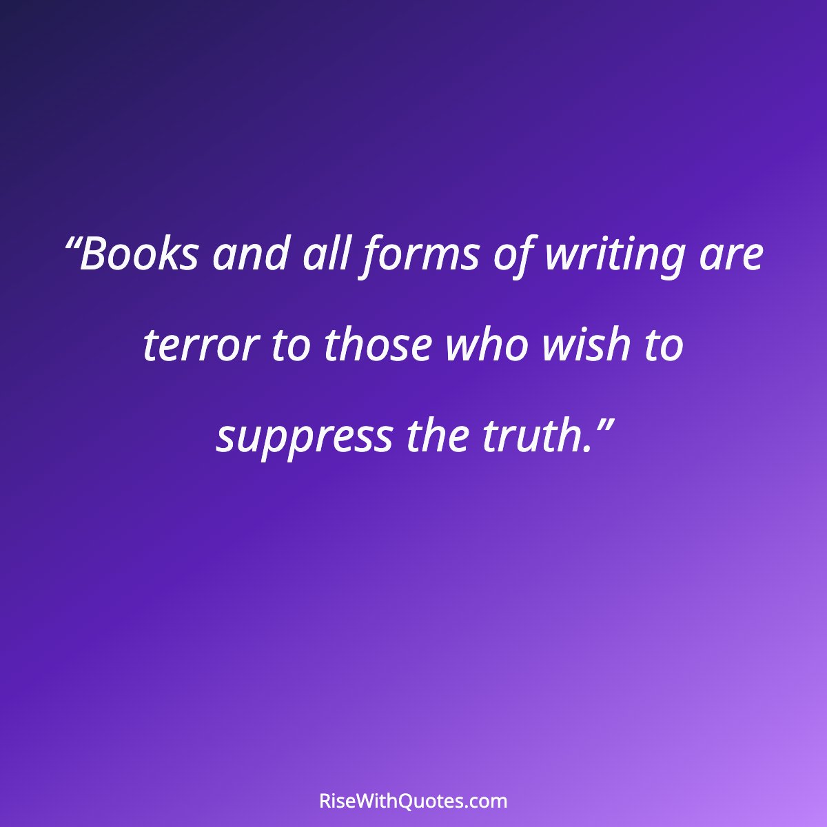 “Books and all forms of writing are terror to those who wish to suppress the truth.”