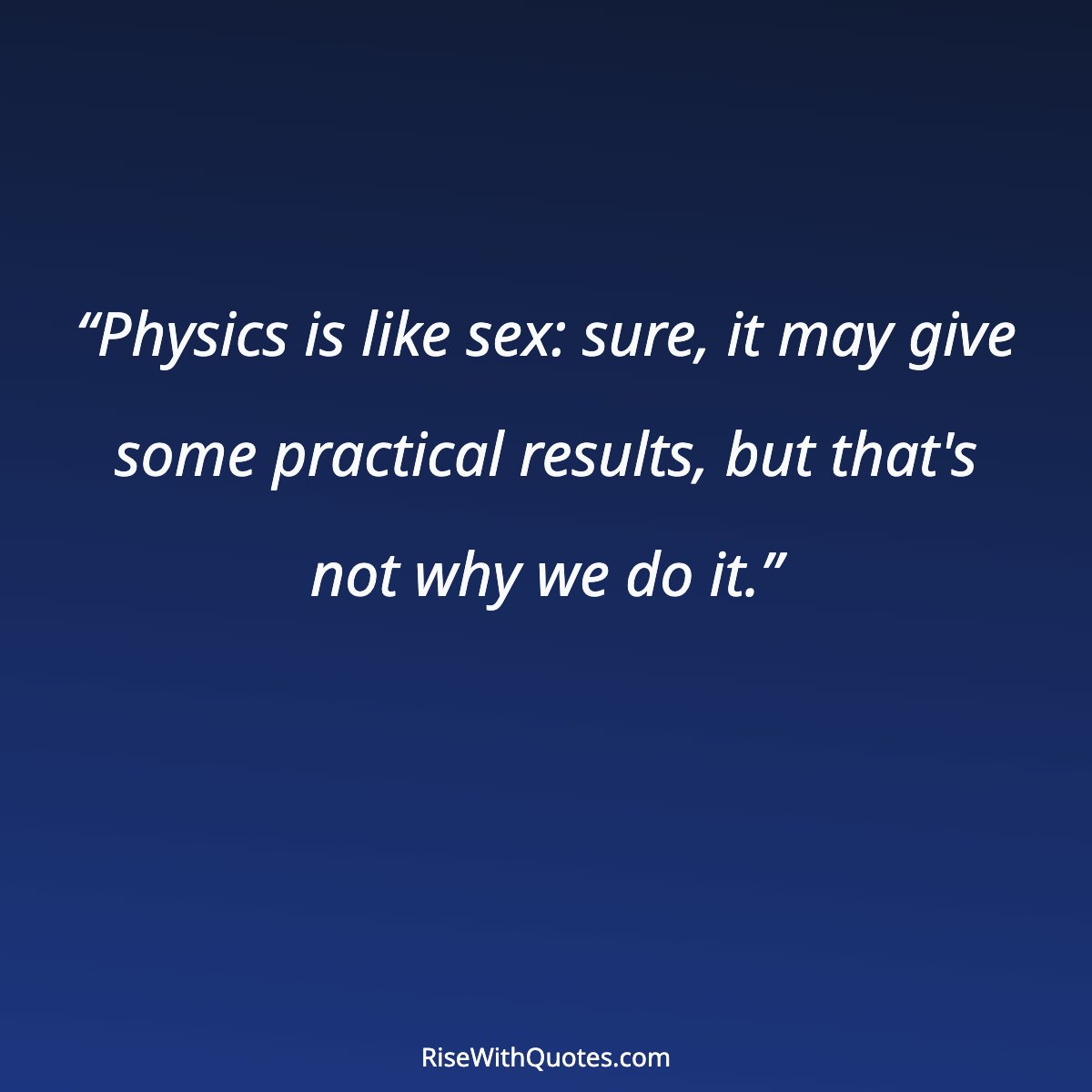 “Physics is like sex: sure, it may give some practical results, but that's not why we do it.”