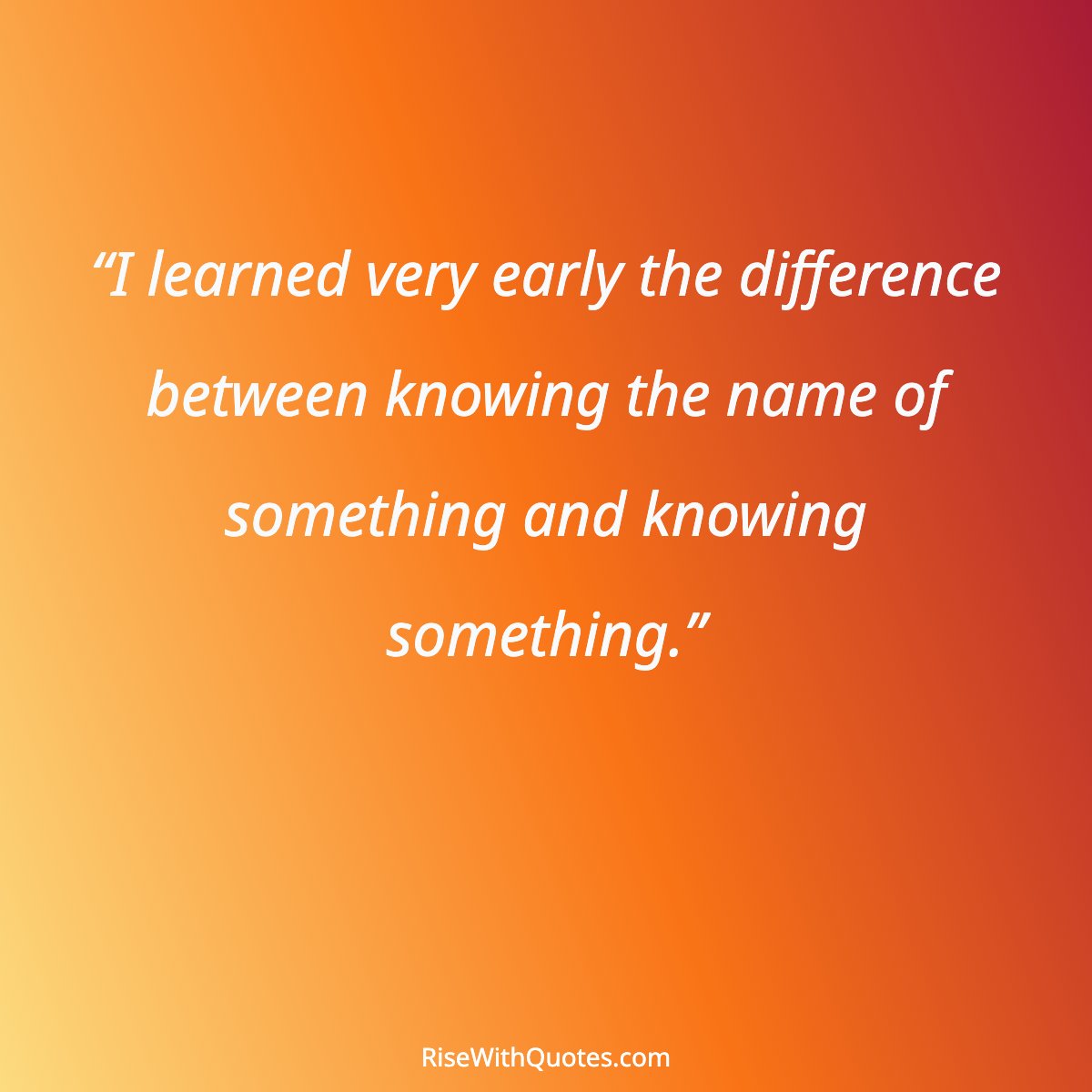 “I learned very early the difference between knowing the name of something and knowing something.”