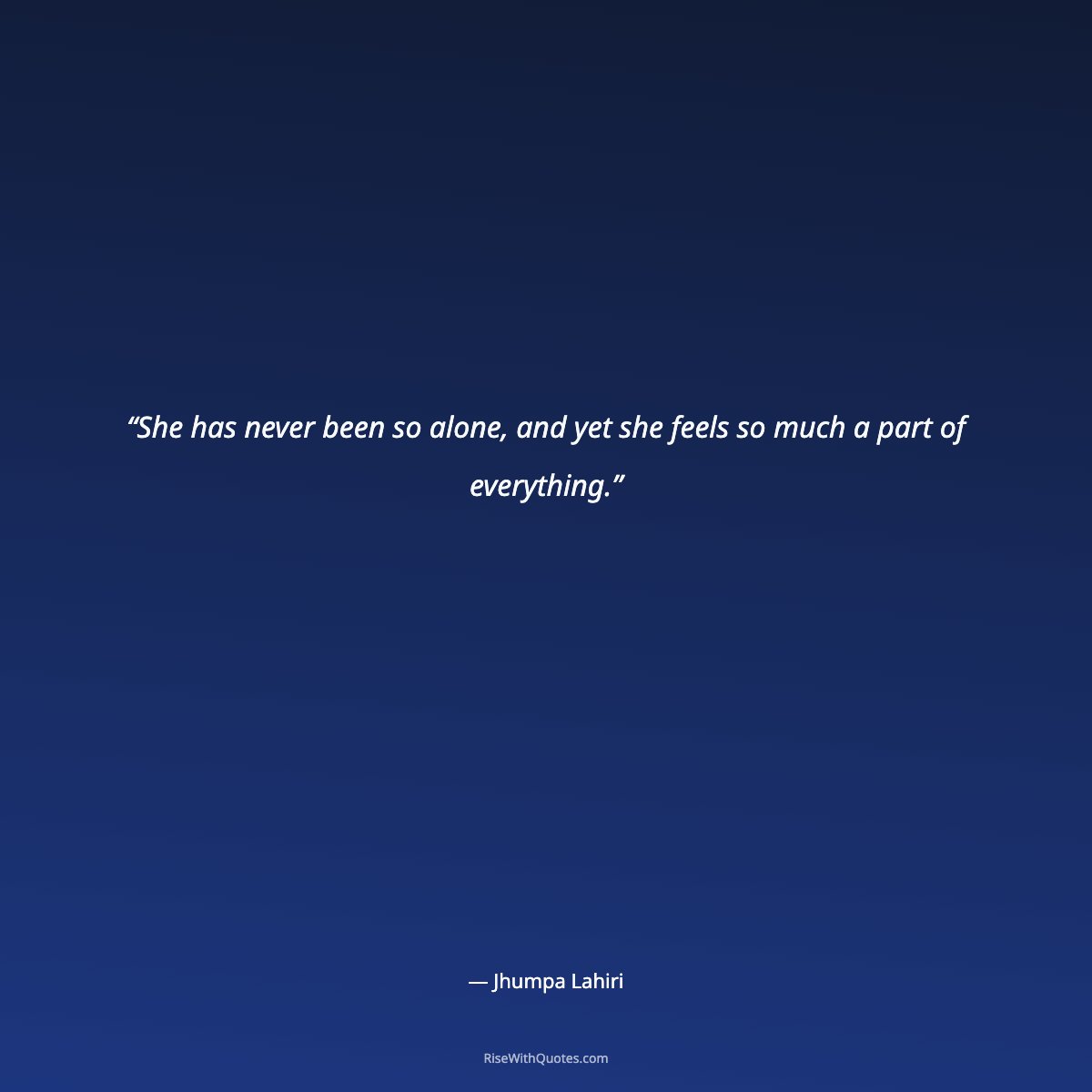 “She has never been so alone, and yet she feels so much a part of everything.”