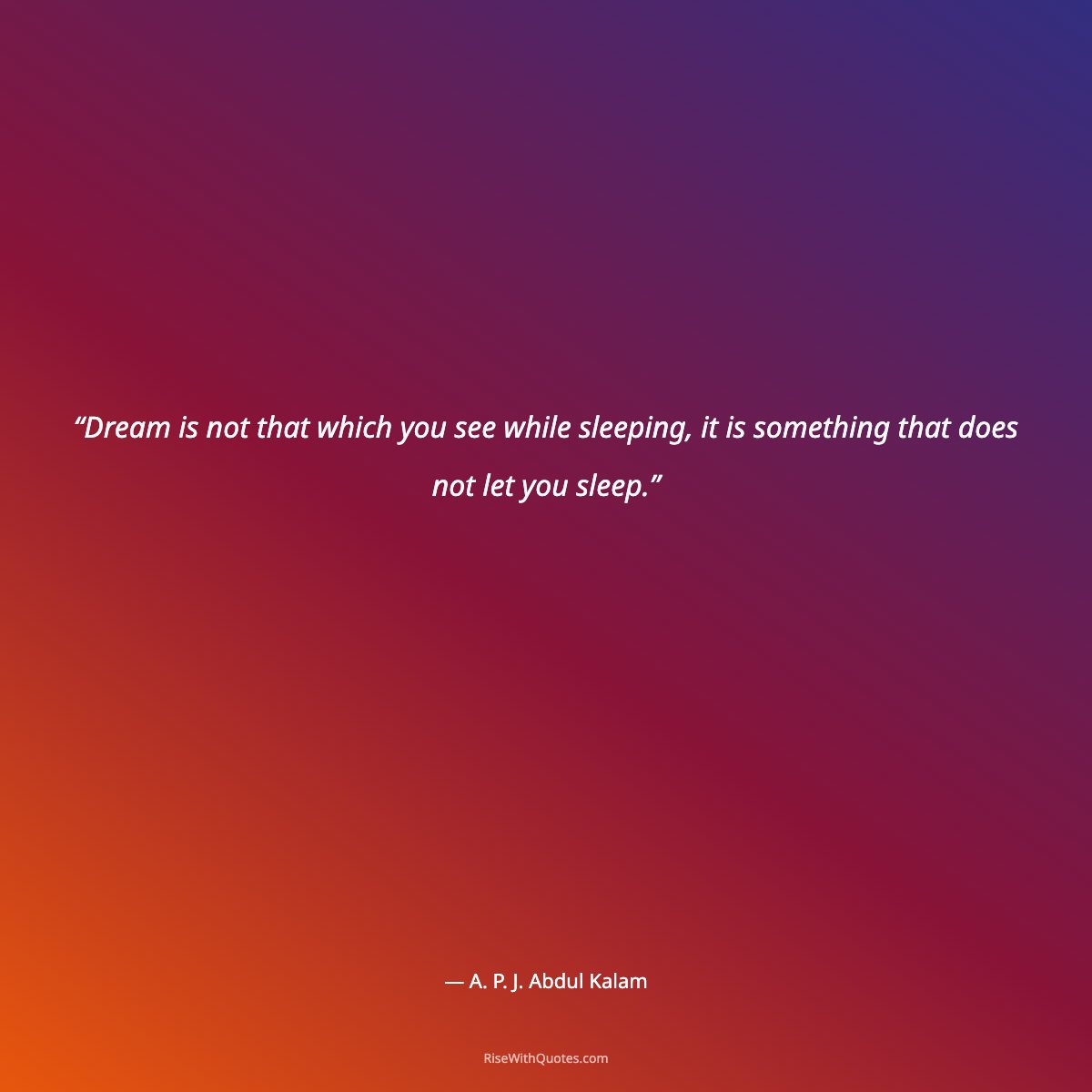 “Dream is not that which you see while sleeping, it is something that does not let you sleep.”