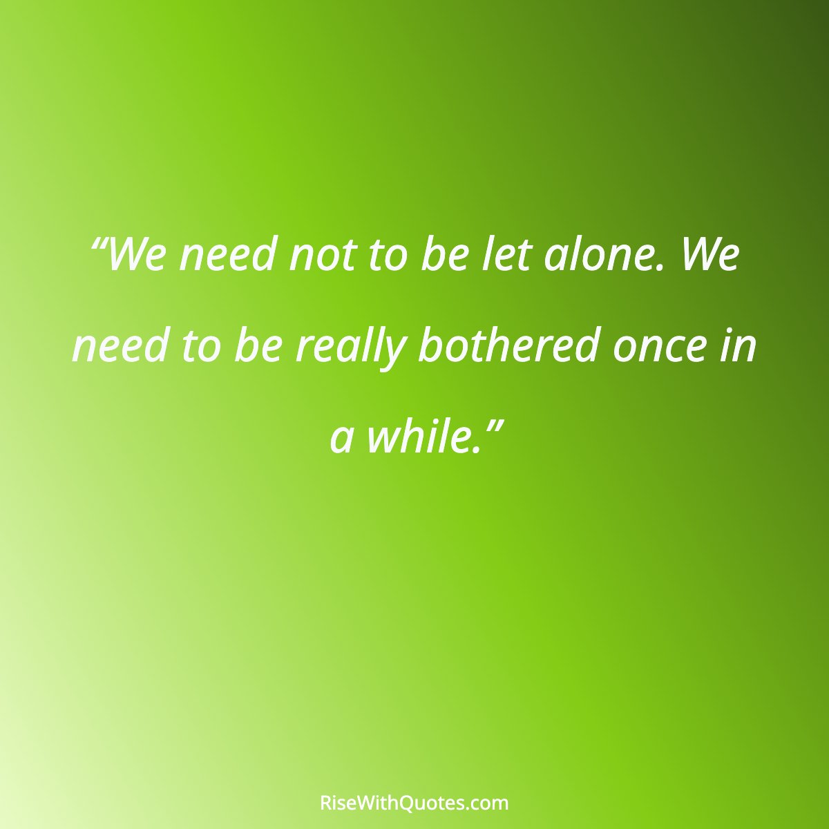 “We need not to be let alone. We need to be really bothered once in a while.”