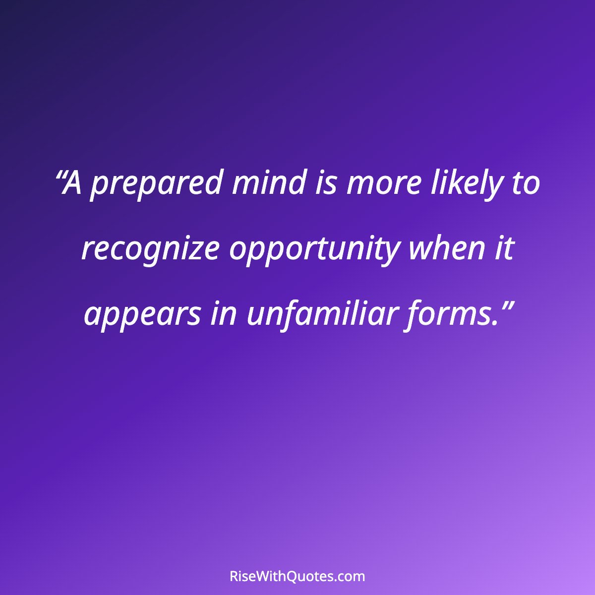 “A prepared mind is more likely to recognize opportunity when it appears in unfamiliar forms.”