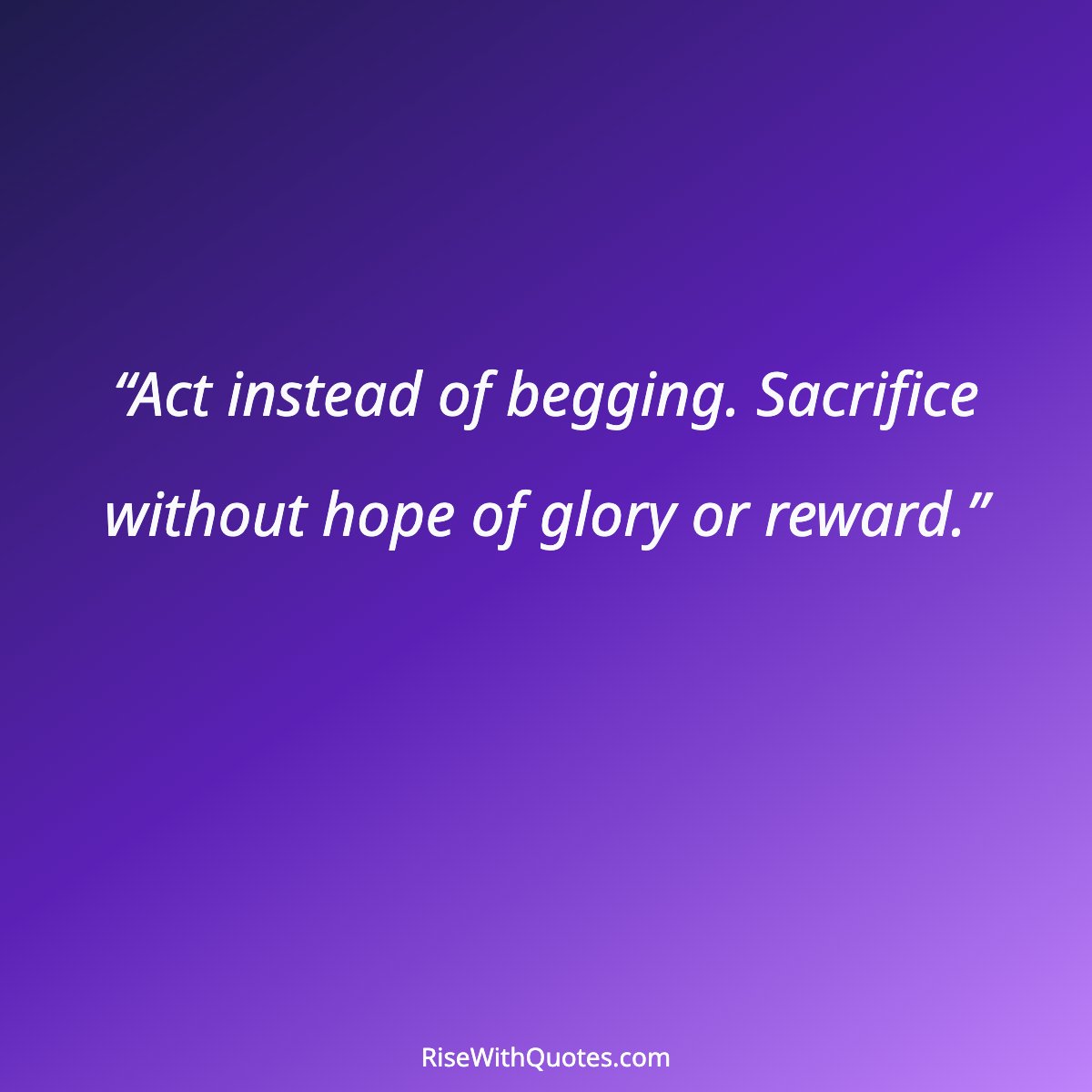 “Act instead of begging. Sacrifice without hope of glory or reward.”