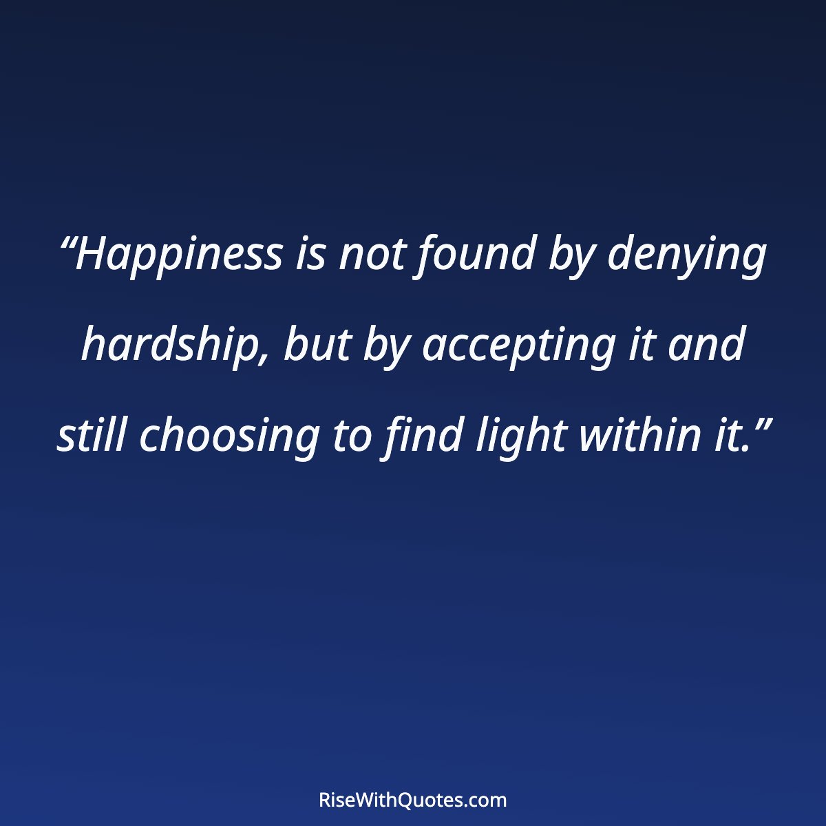 “Happiness is not found by denying hardship, but by accepting it and still choosing to find light within it.”