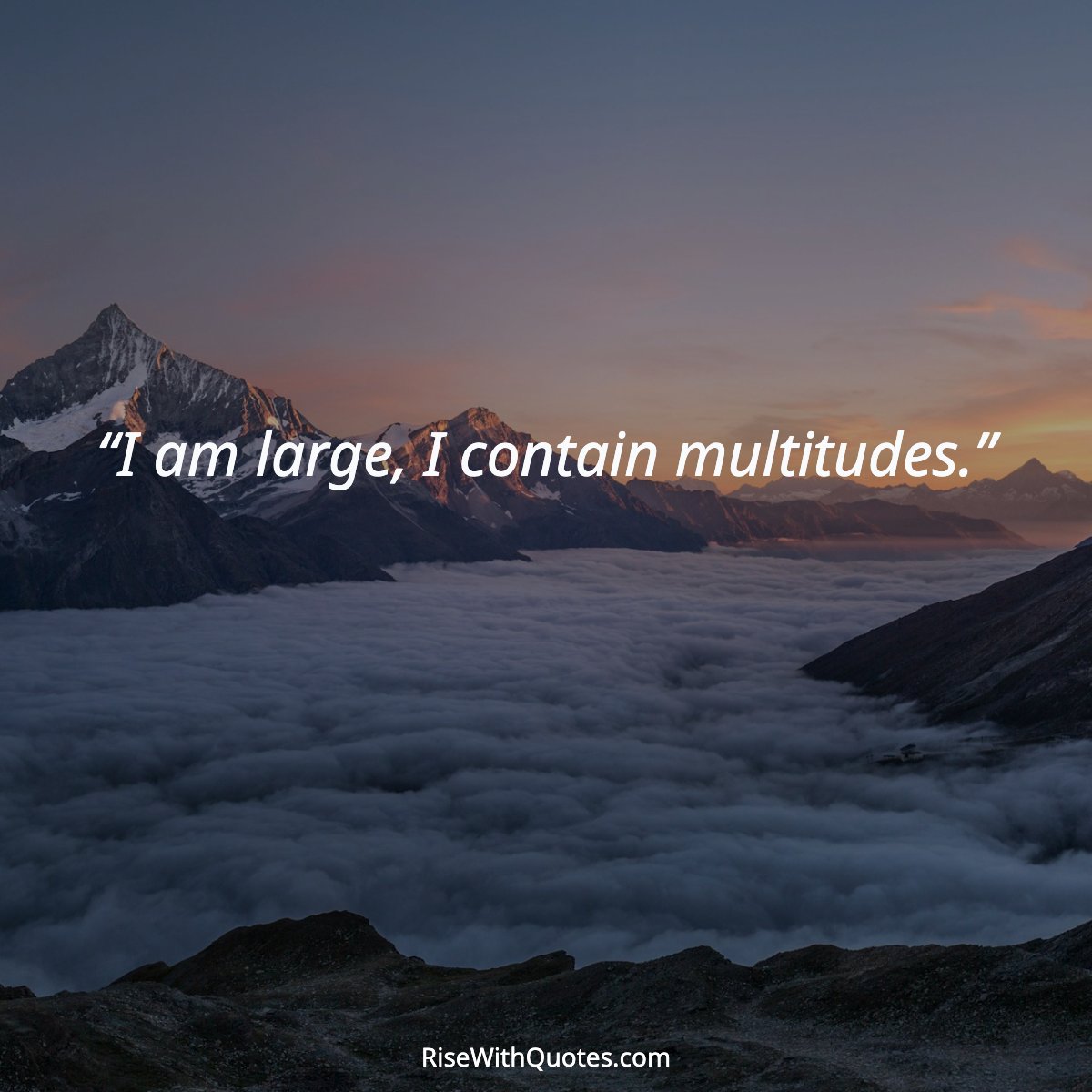 Meaning: Whitman celebrates the complexity of human identity. Individuals are not limited to one definition but hold diverse thoughts, emotions, and experiences. -