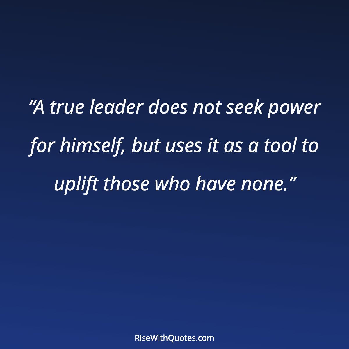 “A true leader does not seek power for himself, but uses it as a tool to uplift those who have none.”