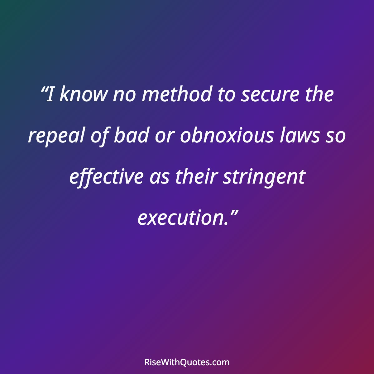 “I know no method to secure the repeal of bad or obnoxious laws so effective as their stringent execution.”
