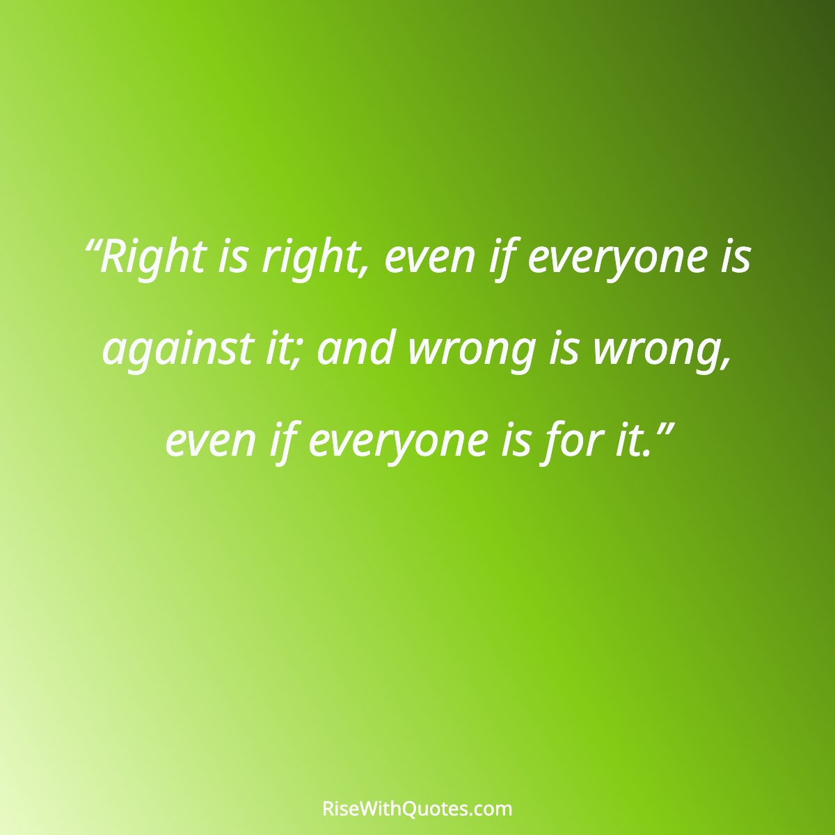 “Right is right, even if everyone is against it; and wrong is wrong, even if everyone is for it.”