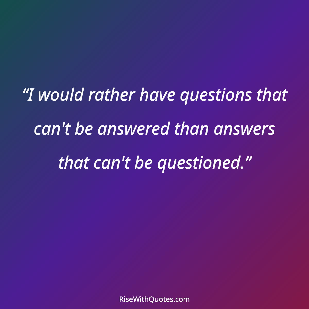 “I would rather have questions that can't be answered than answers that can't be questioned.”