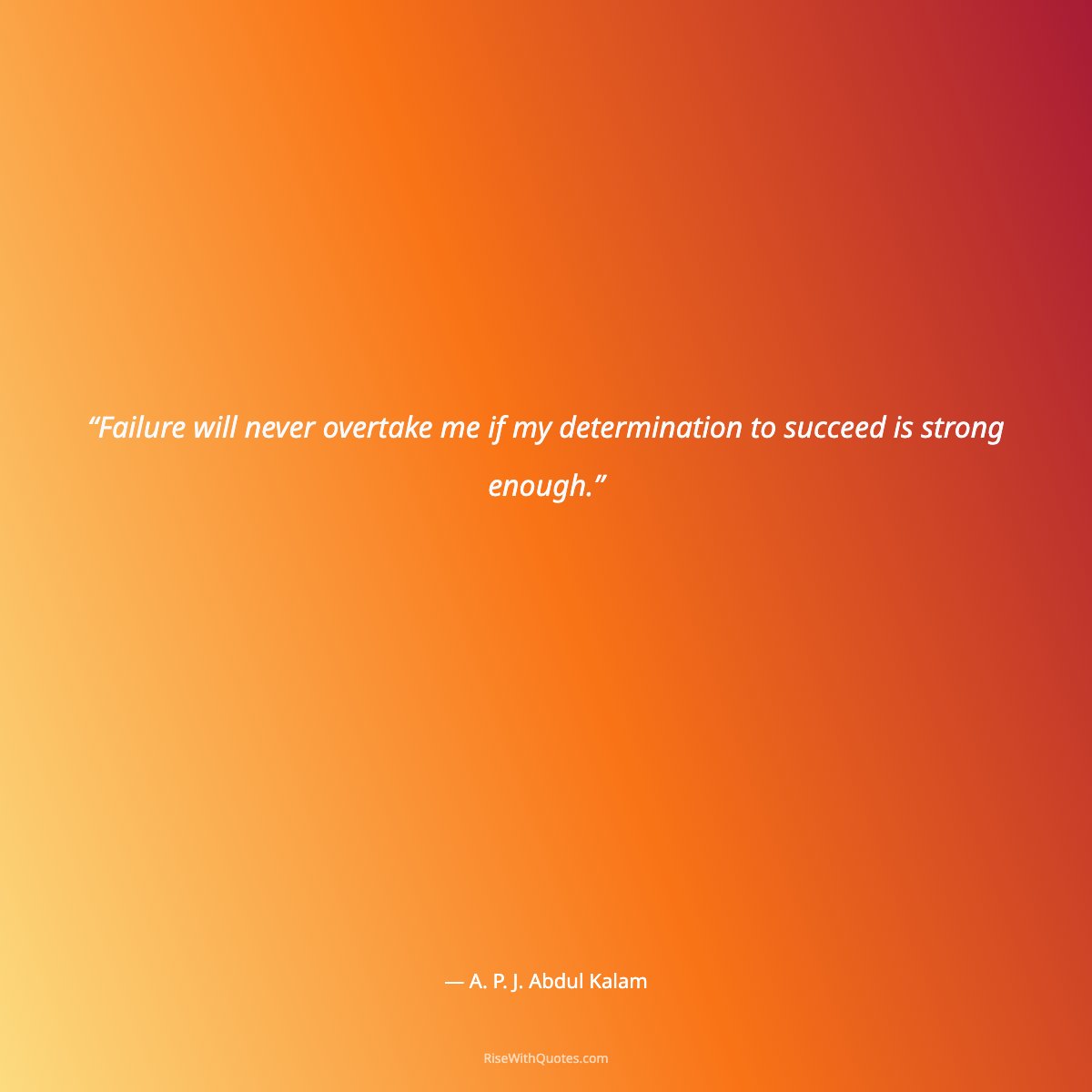 “Failure will never overtake me if my determination to succeed is strong enough.”