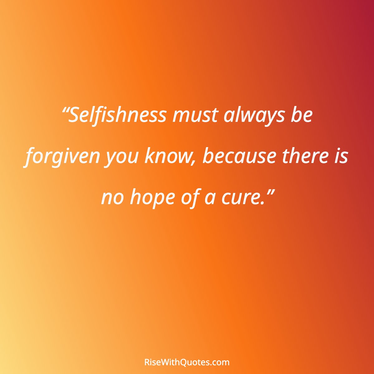 “Selfishness must always be forgiven you know, because there is no hope of a cure.”
