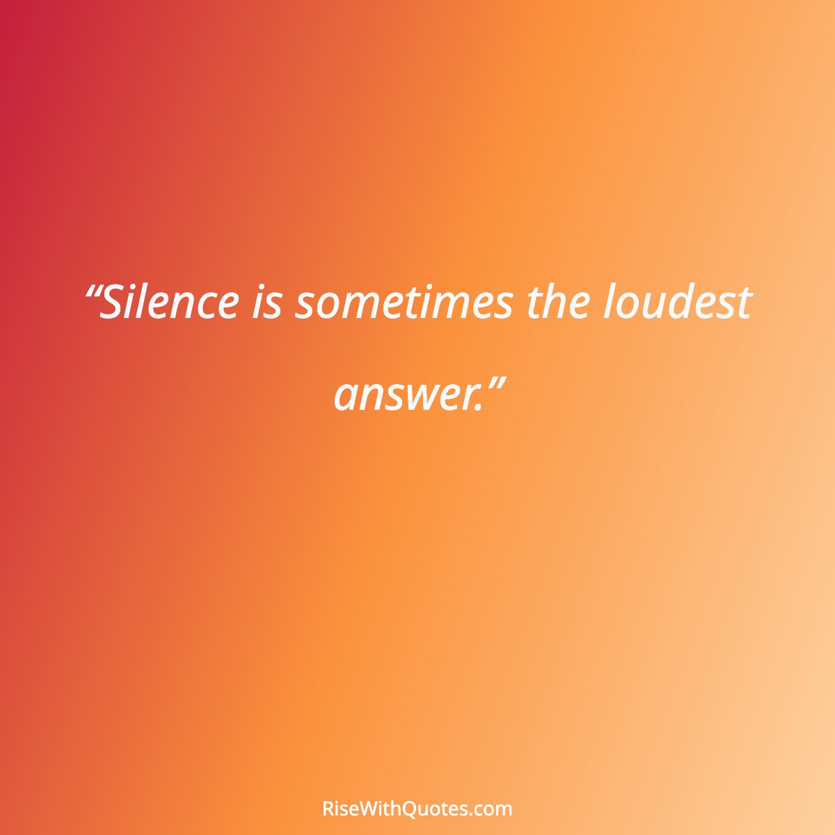 Meaning: Not all situations require words. Silence can communicate boundaries, understanding, or disinterest more effectively than speech. This quote highlights the power of restraint. -